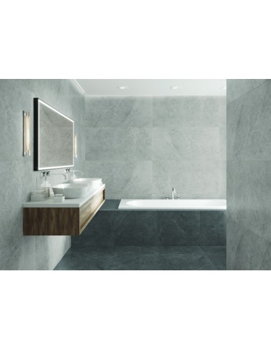 Matowa płytka gresowa Ceramica Limone Ash Black 60x120. Inspirowana betonem kolekcja ściennych podłogowych płytek ceramicznych polskiego producenta Ceramica Limone. Wysokiej jakości, mrozoodporna płytka w odcieniach czarnego i antracytu doskonale nadaje się do wykorzystania zarówno we wnętrzach jak i na tarasach. Matowe wykończenie i rektyfikowane krawędzie pozwalają stworzyć piękne aranżacje kuchni, łazienek, salonów czy sypialni.